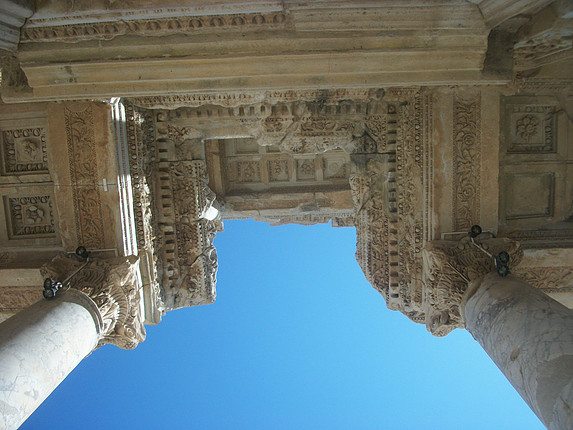 So here is the underside between the columns of the Library of Celsus at Ephesus.